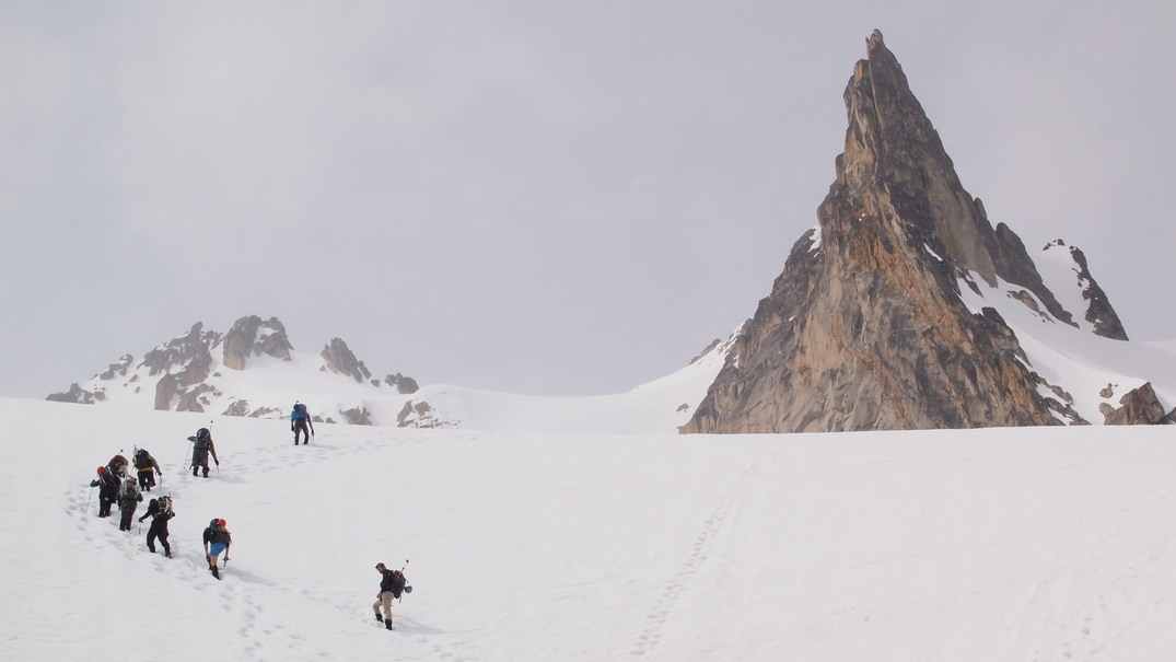 Skiing up point 5,560' with Lichtenberg Mountain in the background