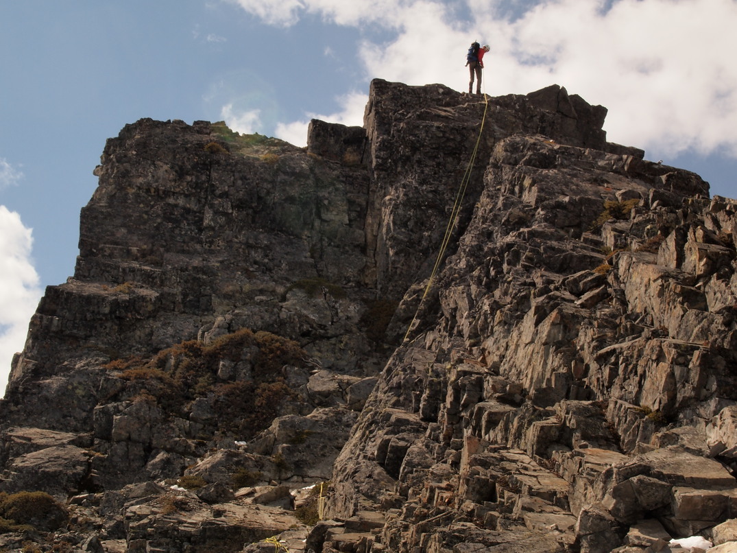 We ran into another rope team, Ken and Monique, ahead of us on Lundin Peak's west ridge.