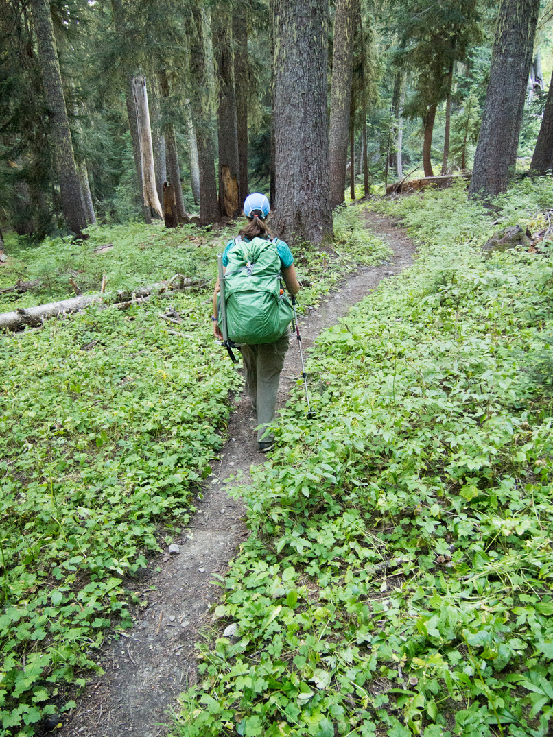 We missed the turn-off from the White River Trail to the Thunder Creek boot path on the first try. And we couldn't even find the fork from the Thunder Creek boot path onto the Luahna boot path, so we just headed up towards Luahna in the direction we though the boot path was.