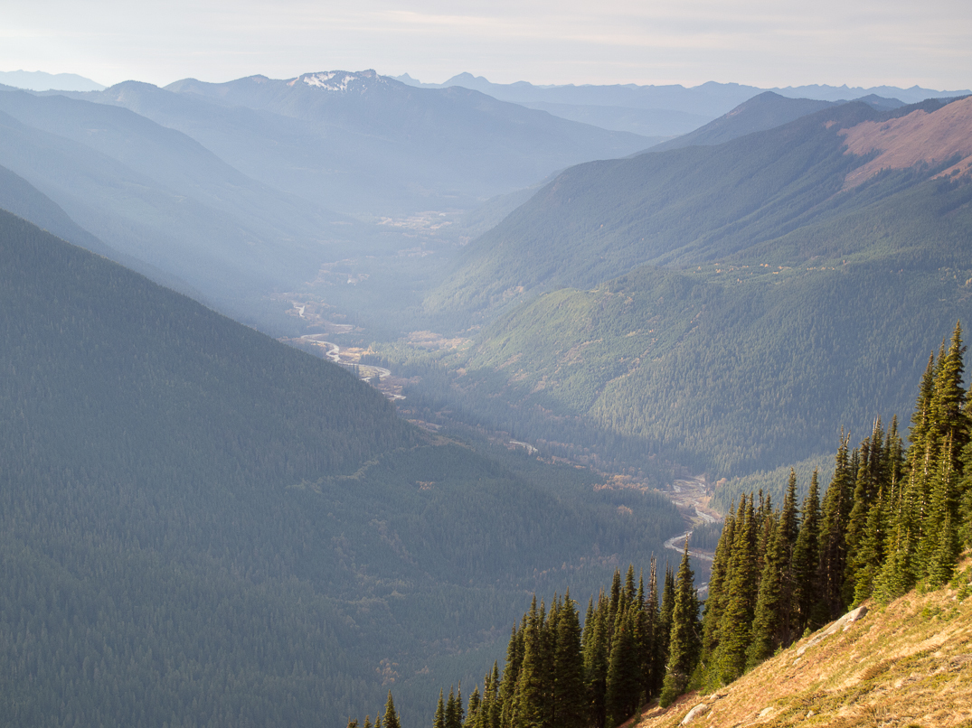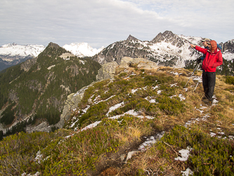 Matt and Carla's camp site at the old lookout site. Sulphur Mountain in the background.