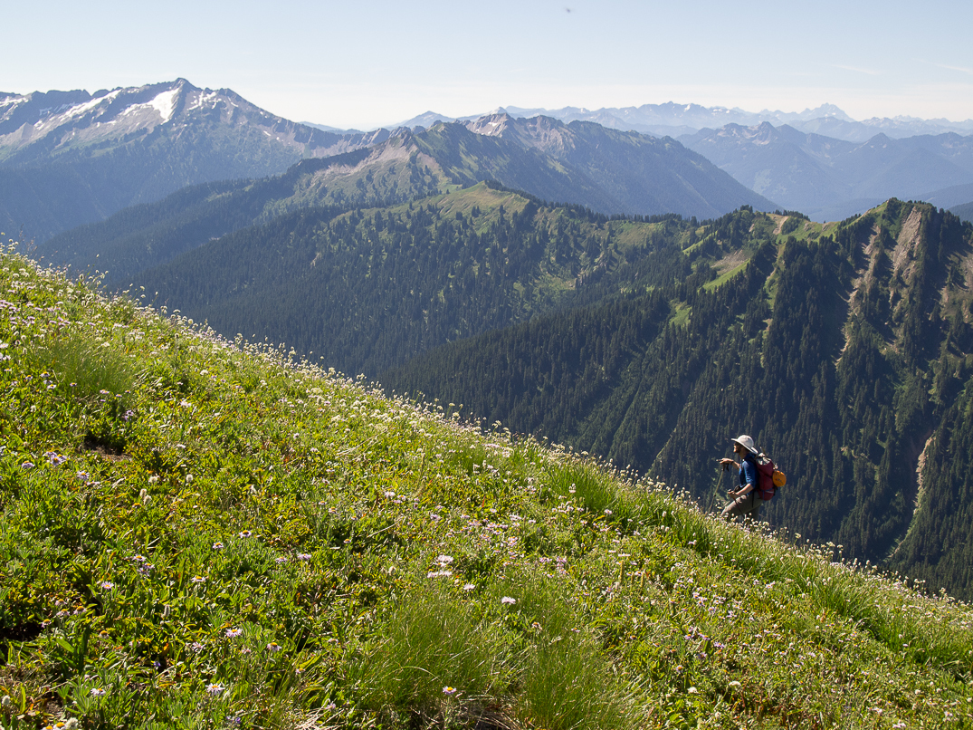 Descending to the PCT. The North Fork Sauk Valley in the distance.