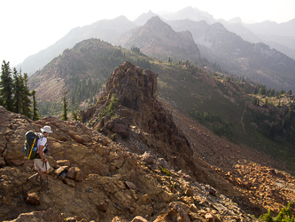 Descending the talus field on the NW slopes below the 6,600' saddle.