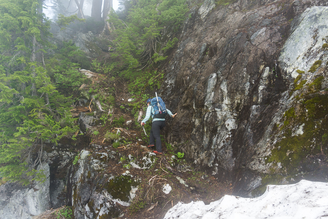 A key ramp at 5,000' that cuts through a cliff band
